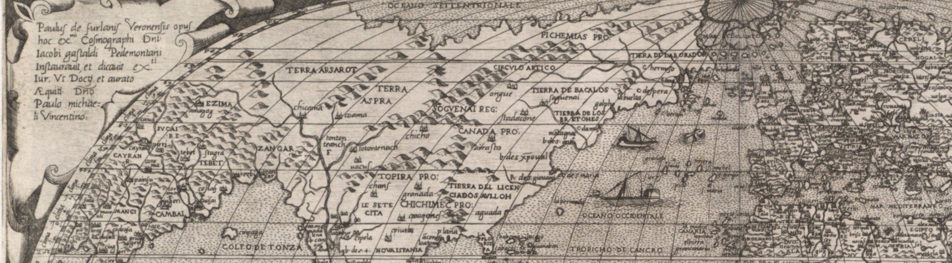 Detail from a 1560 map by Italian cartographer Paolo Forlani. Forlani was the first to include the name “Canada” on a printed map.